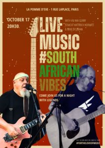 Find out more »South African vibes, come join us for a night with legends ! With VIV AKA GERRY TOMCAT HATTRICK HORWITZ & MIKE DICKMAN Live from 20h30 !