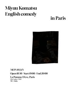 MIYUU IN PARIS It’s on short notice. I'll be performing my gig in Paris. I'll say my all material on th19 Jan. if you like come on please. I think I'll head to at good time. Safia is the MC. And then that's free entry.